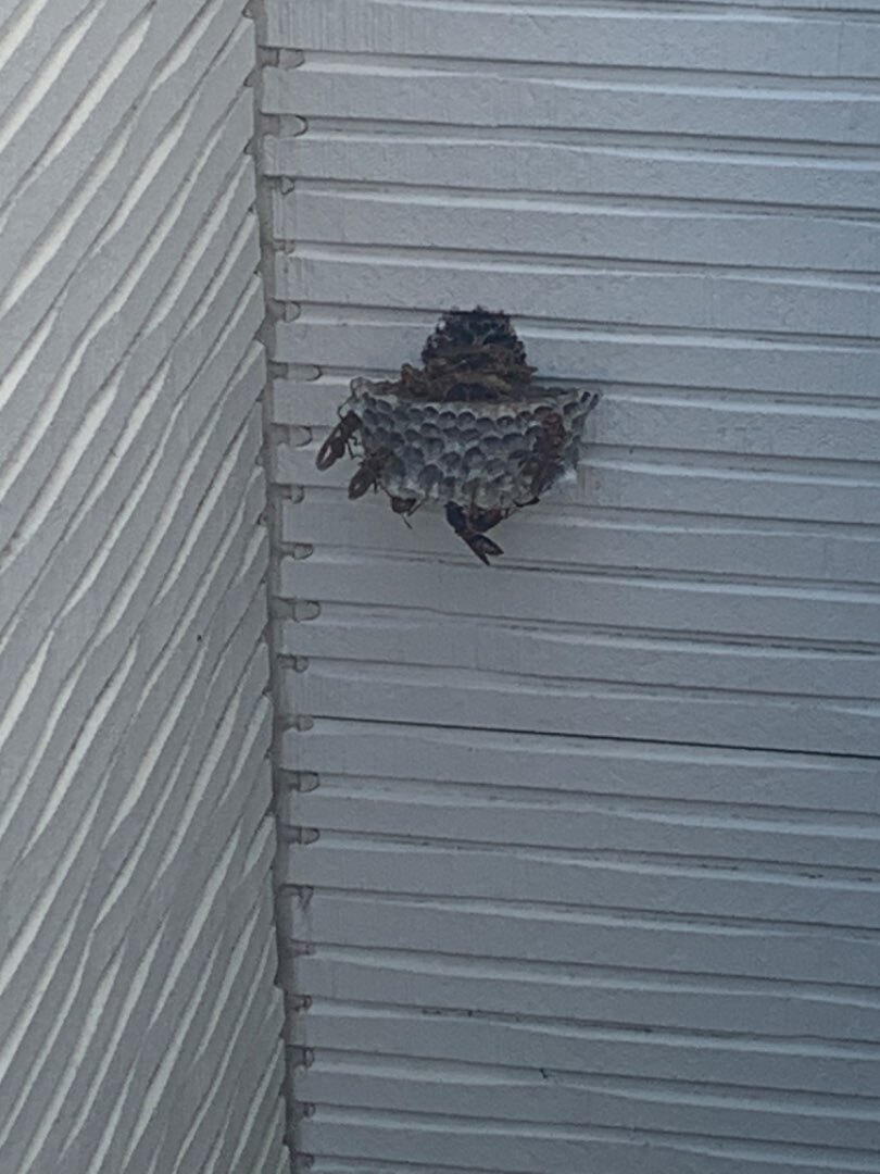 本日は、早朝よりスズメバチの駆除・巣の撤去作業をおこなってまいりました。 巣はまだ完成前の状...