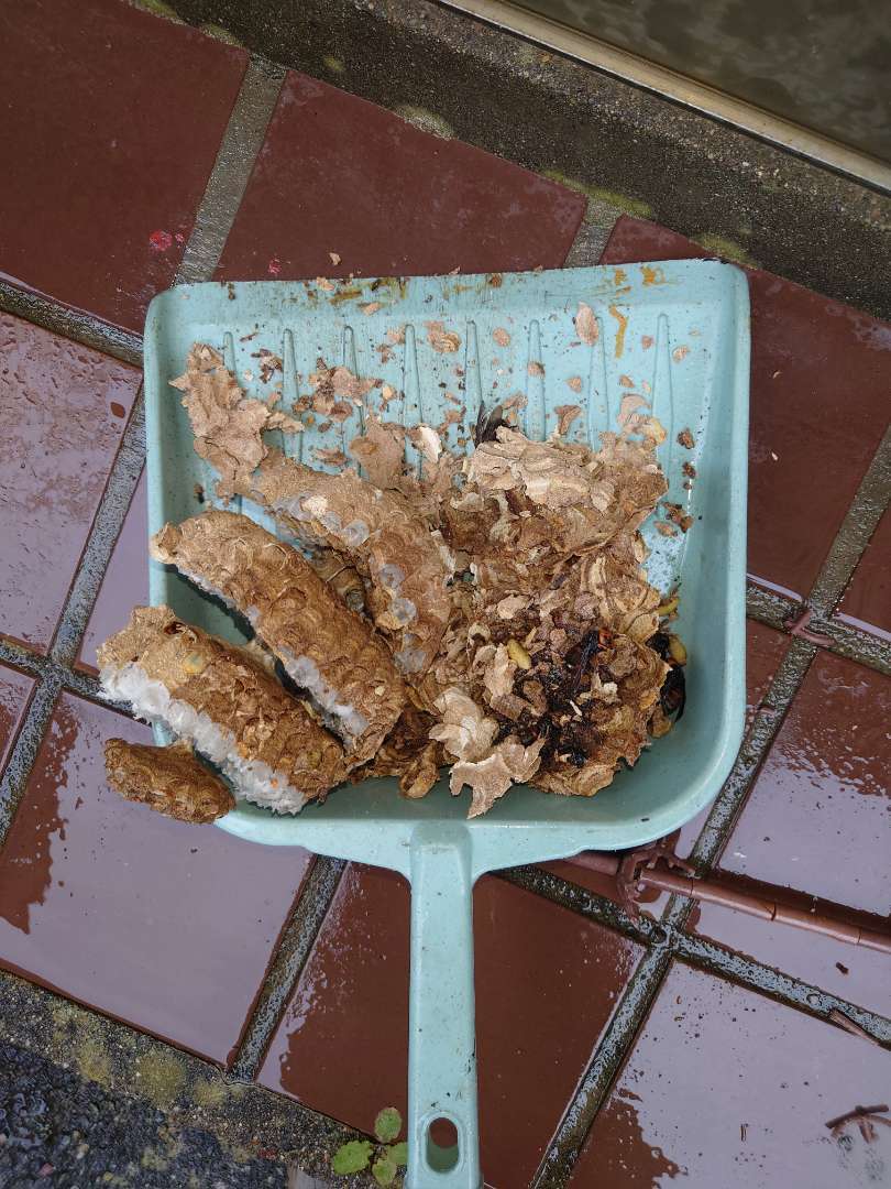本日は、早朝よりスズメバチの駆除・巣の撤去作業をおこなってまいりました。 巣はまだ完成前の状...