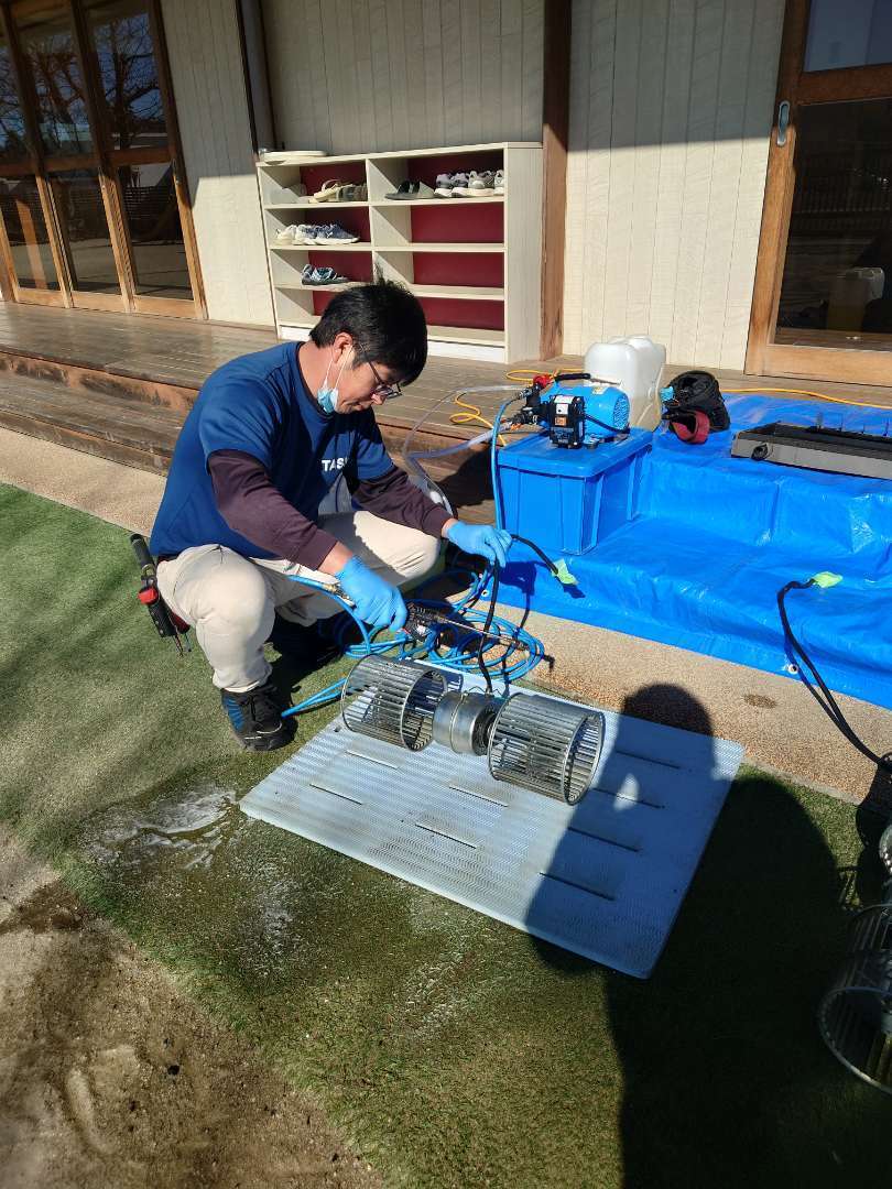 パーツを取り外し、内部を高圧で洗浄する事によって、ホコリやカビ、油汚れまで取り除く事が出来ます!