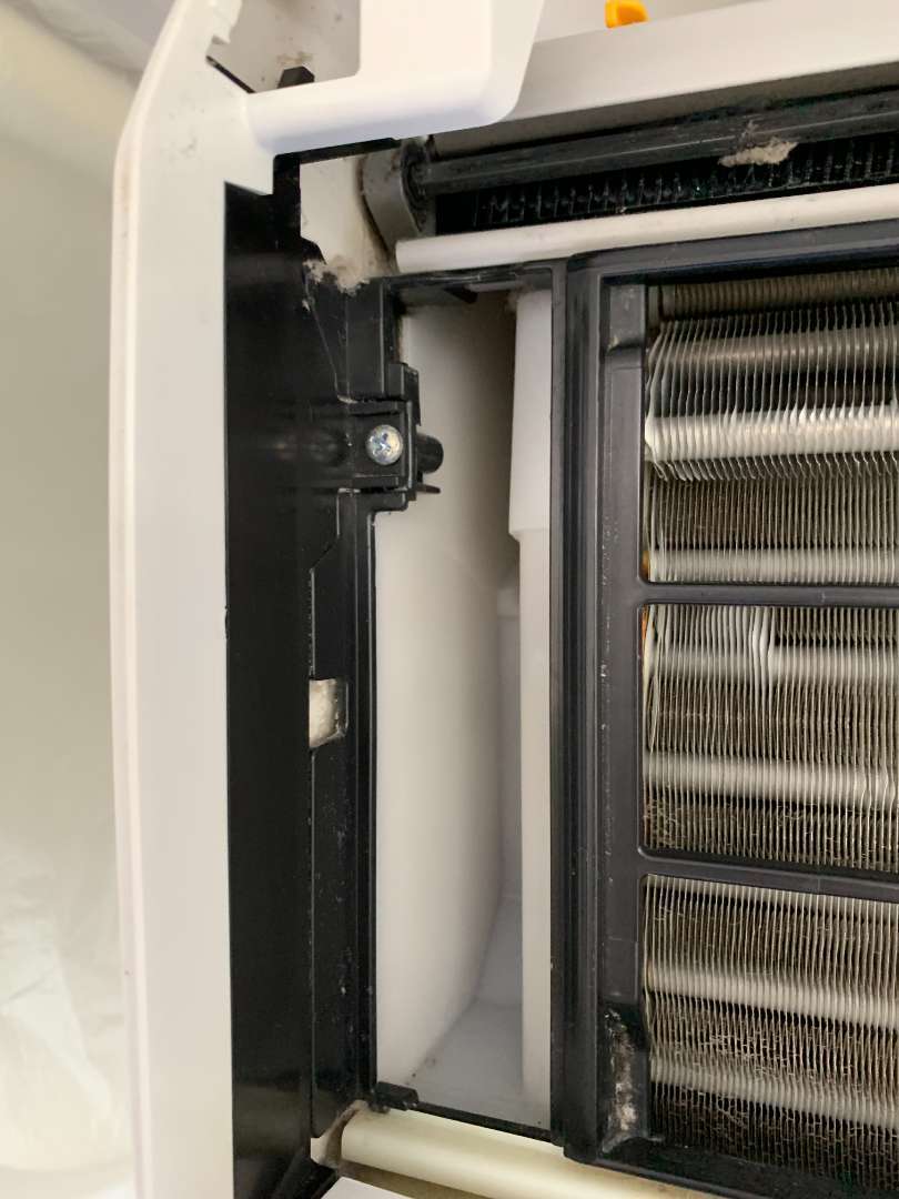 お掃除機能は、フィルターについたホコリを機械が右から左へとブラッシングして、このダストボックスにかき集めます。当然ここのダストボックスにはホコリが溜まりますので、回収することが必要になります。(メーカーによっては、ダストボックスがないものもあります。)